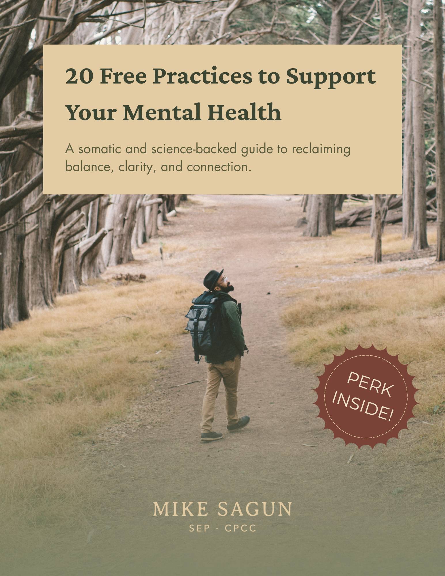 I put together something that I believe every man should have access to: 20 Free Practices to Support Your Mental Health-- Starting Today